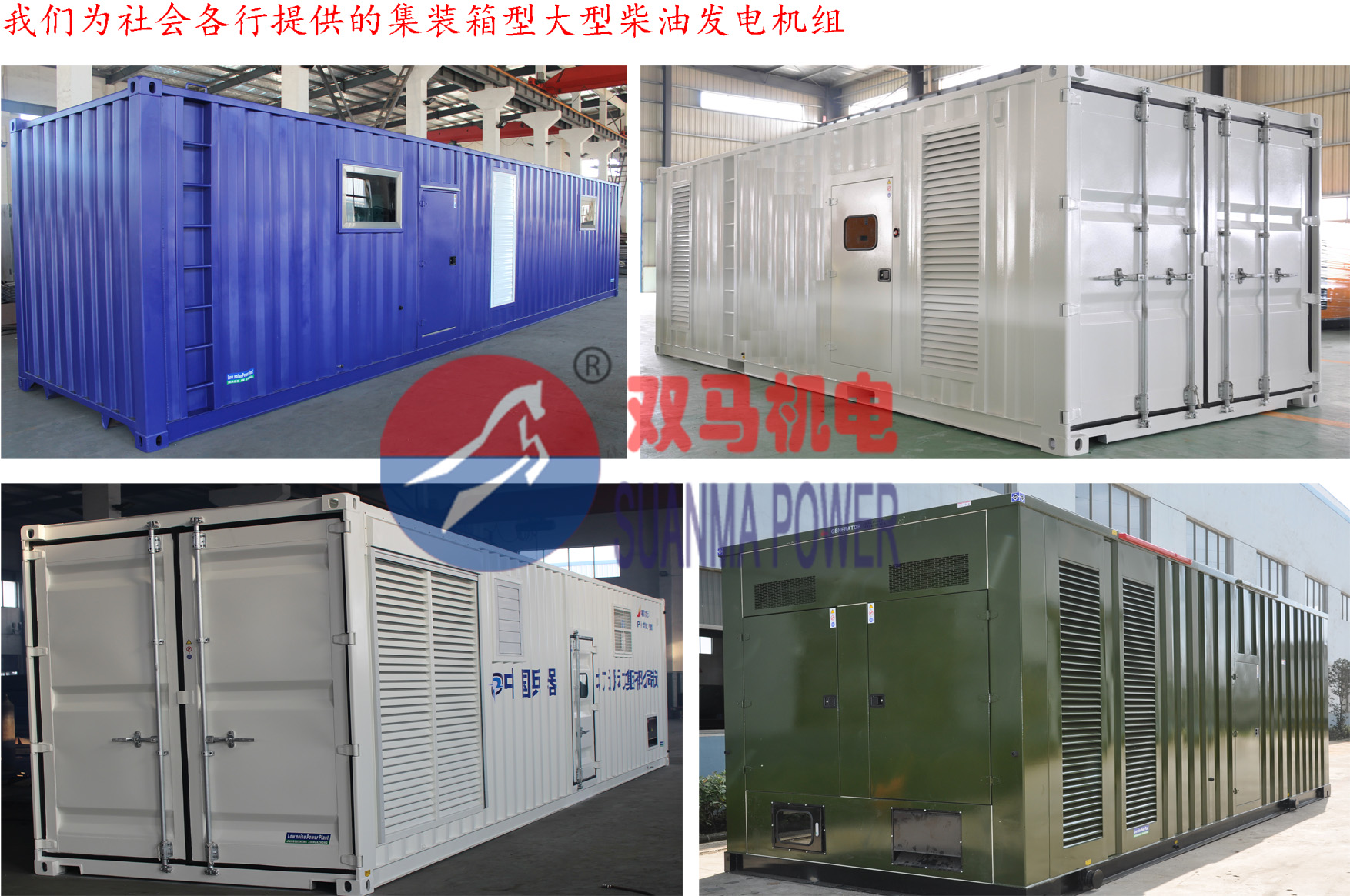 集裝箱型柴油發(fā)電機組一般適用于大功率柴油發(fā)電機組使用,正常功率600KW以上的發(fā)電機組可以配備,主要用于野外長期作業(yè),我公司生產的集裝箱型柴油發(fā)電機組同時滿足以下要求: